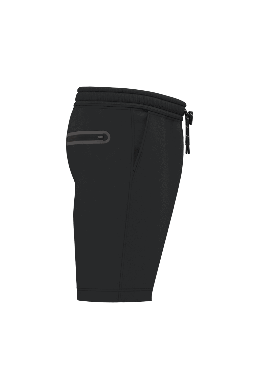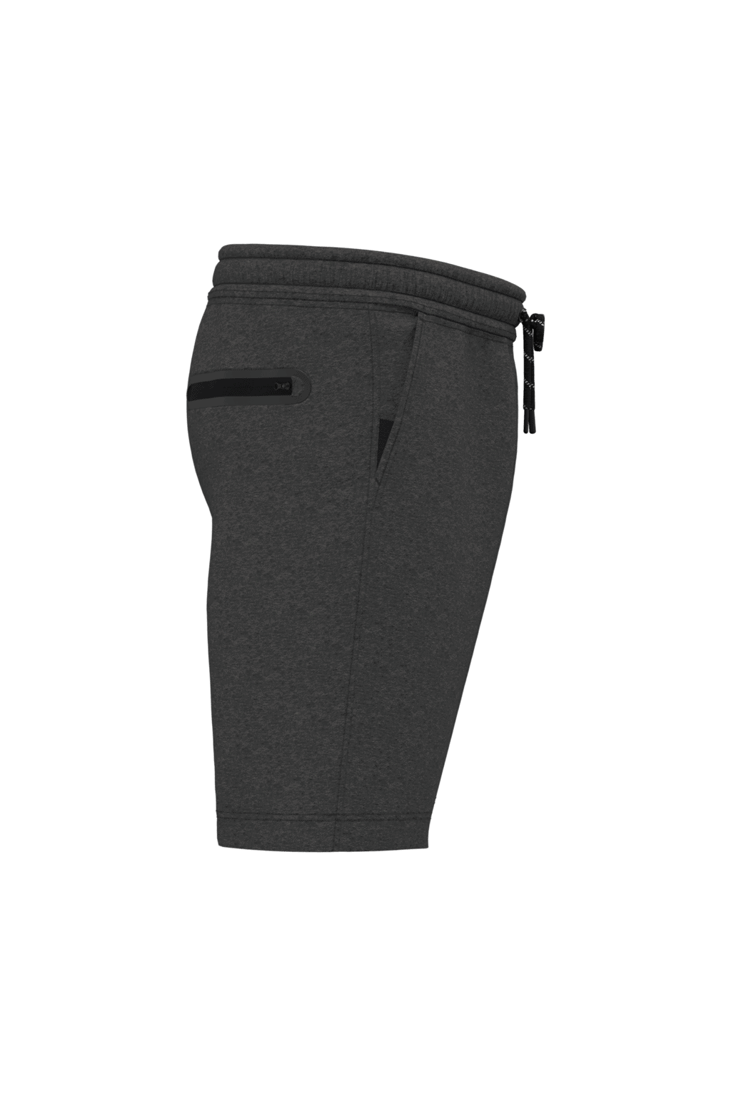 Herenshort – Effen kleuren: 94% polyester / 6% elasthan. Heather kleuren: 79% polyester / 15% viscose / 6% elasthan. Heel comfortabele stof. Elastische tailleband met tweekleurige aanrijgkoordjes, afgewerkt met een plastic uiteinde en metalen ringetjes. 2 met jersey gevoerde zakken aan de voorkant en 1 achterzak met rits, contrasterende warmtegelaste afwerking. De zakken zijn afgewerkt met een contrasterend elastisch deel in Black op alle kleuren en in Dark Grey op Black en Ash Heather. Dubbel stiksel aan de onderkant. Tear-away merklabel. – Heel comfortabel elasthan. – Blijft goed zitten dankzij de elastische tailleband met aanrijgkoordjes. – Eenvoudige personalisatie dankzij het afneembare Tear Away-label.
