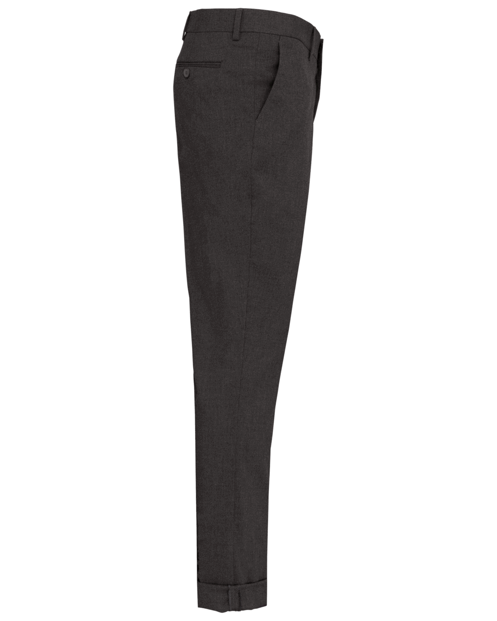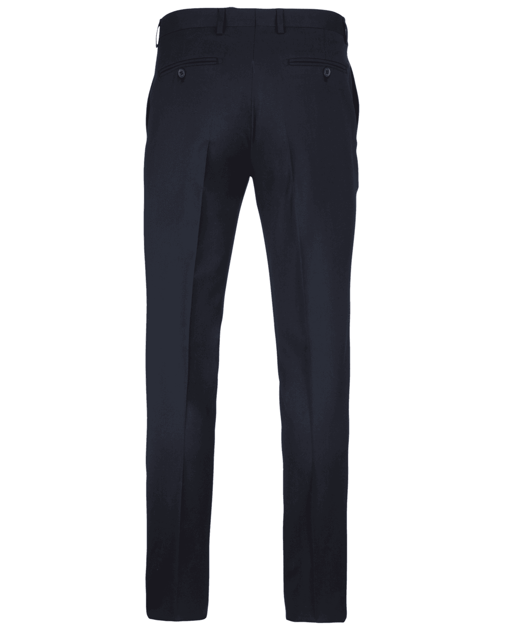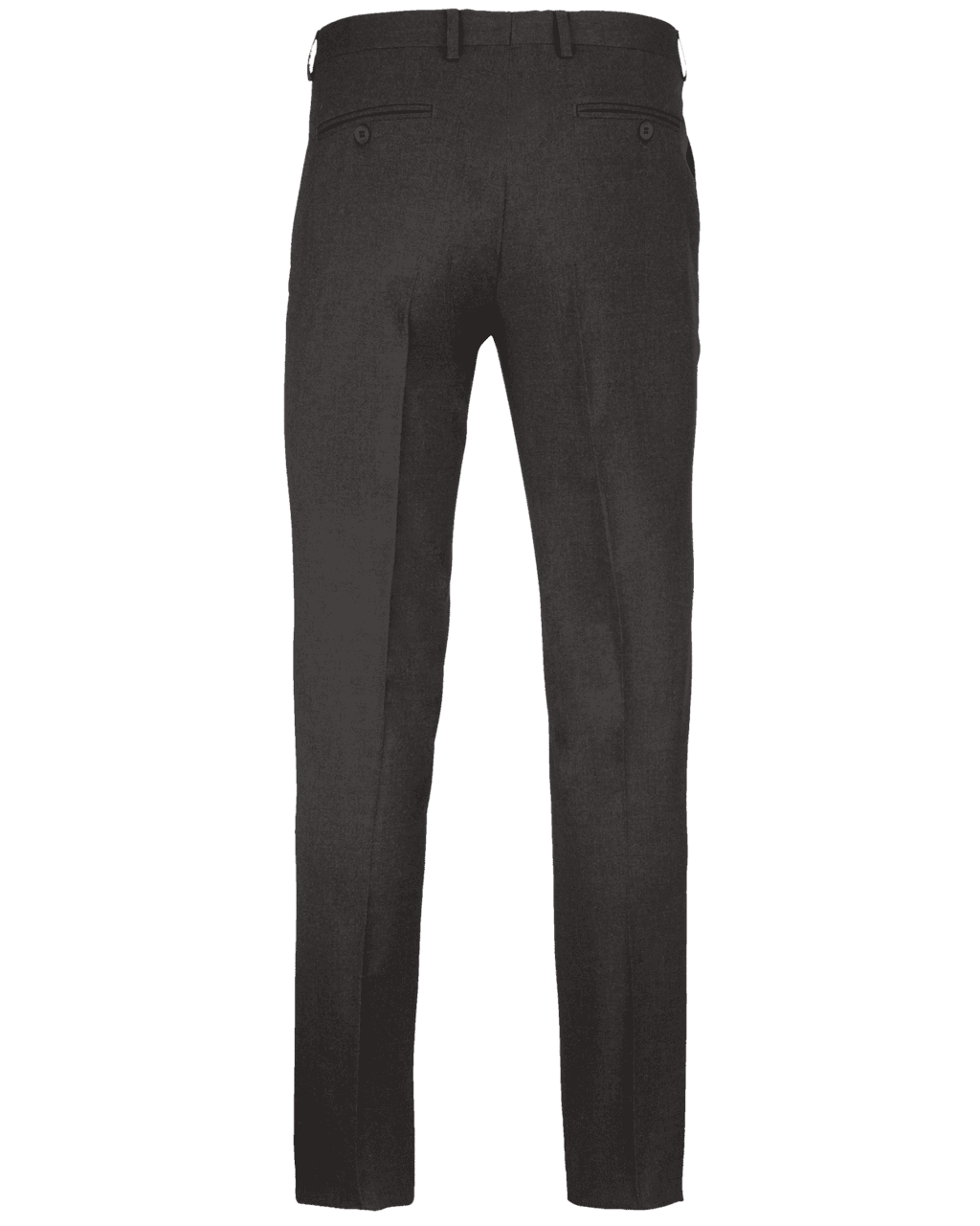 Herenpantalon – 64% polyester / 34% viscose / 2% elasthan. Broek met fitted pasvorm. 2 Italiaanse zakken aan de voorkant en 2 omzoomde achterzakken met knoop. Ritsgulp met haakje en knoop onder lijst. Riem met lussen. 1/2 broekspijp vooraan gevoerd. ìOnafgewerkteî onderzijde om een perfect aangepaste zoom te kunnen maken. – Een onmisbaar, elegant stuk uit de professionele garderobe. – Trendy, fitted pasvorm met discrete en verfijnde afwerkingen. – Mantelpak om af te werken met kostuumjasje K6130.