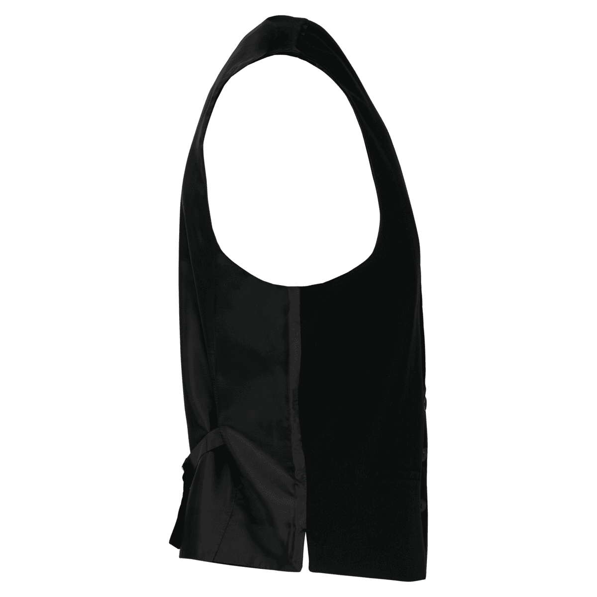 Herengilet – 64% polyester / 34% viscose / 2% elasthan. Fitted pasvorm. Voering 100% taffetas polyester. Sluit aan de voorkant met 5 knopen. 2 zakjes met biesjes vooraan. 2 zijsplitten. Gevoerd achterpand. Metalen gesp voor aanpassing op de achterkant. – Elegant en tijdloos. Ideaal om boven een overhemd te dragen. – Fitted pasvorm, valt perfect. – Afgewerkt met een metalen gesp voor aanpassing op de achterkant.