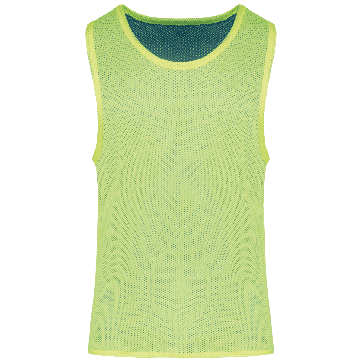 Omkeerbaar Trainingshesje – 100% polyester mesh. Twee op elkaar genaaide lagen: 90g/m² elk. – Opengewerkt tricot. – 2 genaaide lagen –