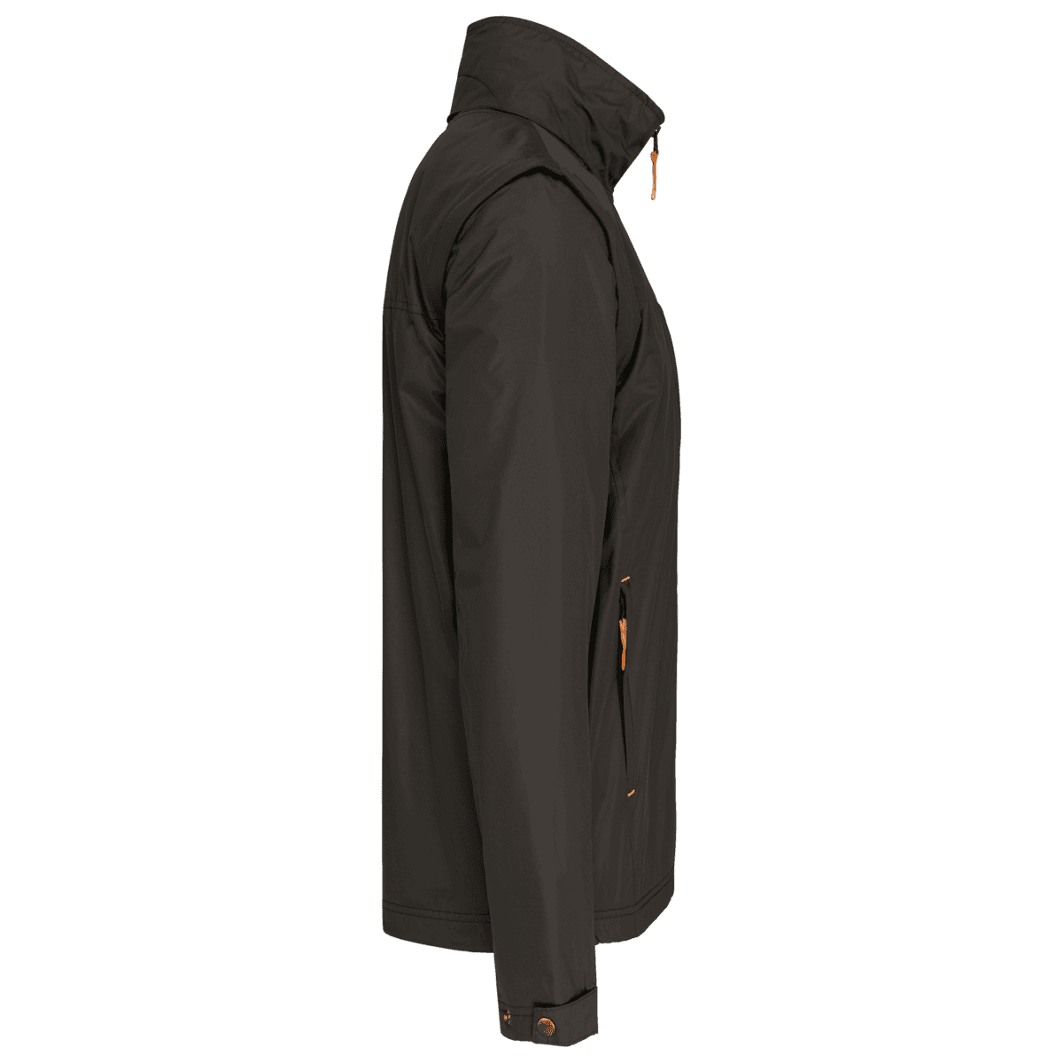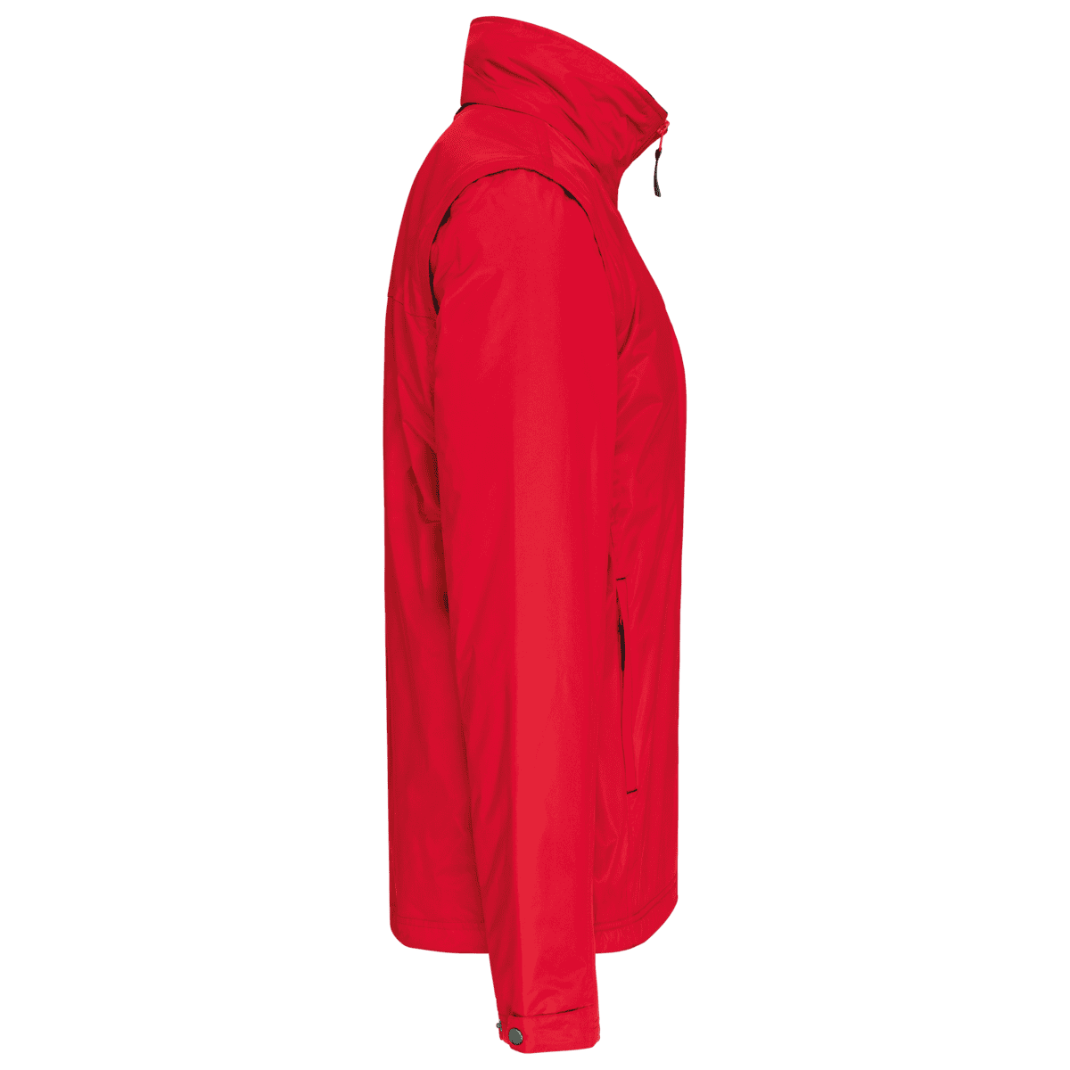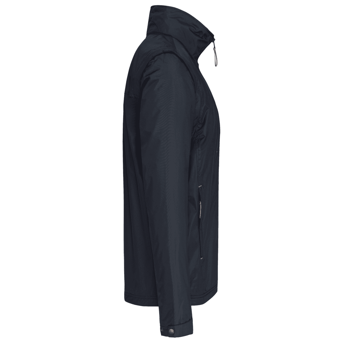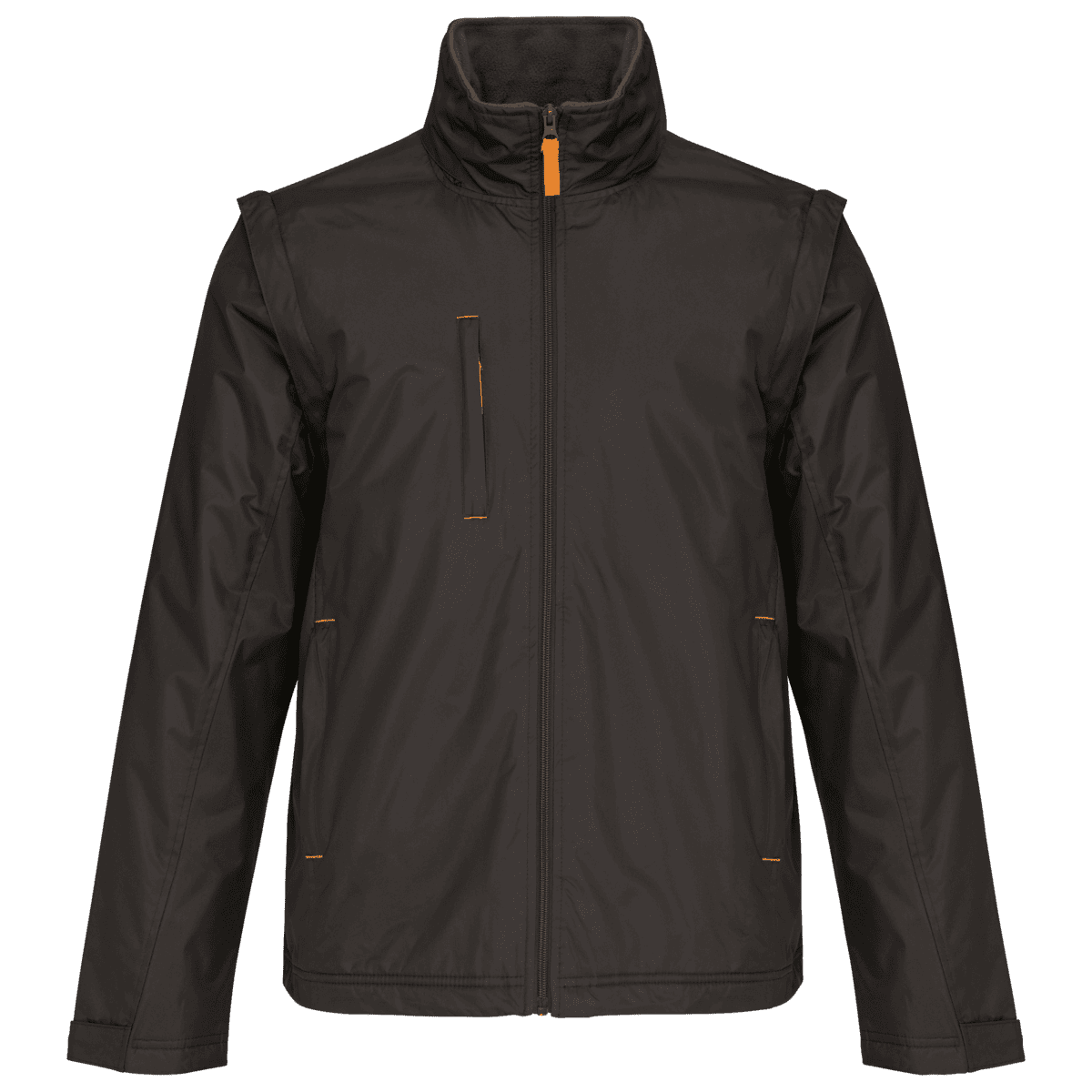 Herenjack met afneembare mouwen – 100% polyester met PVC inductie. 100% polyester fleecevoering. De voering van de mouwen is in 100% polyester + 100% polyesterwatten. Zachte stof. Volledige ritssluiting. 3 zakken met ritssluiting. Afritsbare mouwen. Verstelbare mouwuiteinden. Contrasterende ritstrekker, nektape en stopstiksels. 3 binnenzakken (2 met rits en 1 gsmzakje). Aanrijgkoord aan de binnenkant de jas. Capuchon verwerkt in de kraag. Drukkersrits. – PVC-coating voor een betere waterdichtheid van de stof. – Sterk, soepel en met thermisch geheugen dankzij de fleecevoering van het lichaam. – Veelzijdig en heel functioneel kledingstuk dankzij de uitneembare mouwen.
