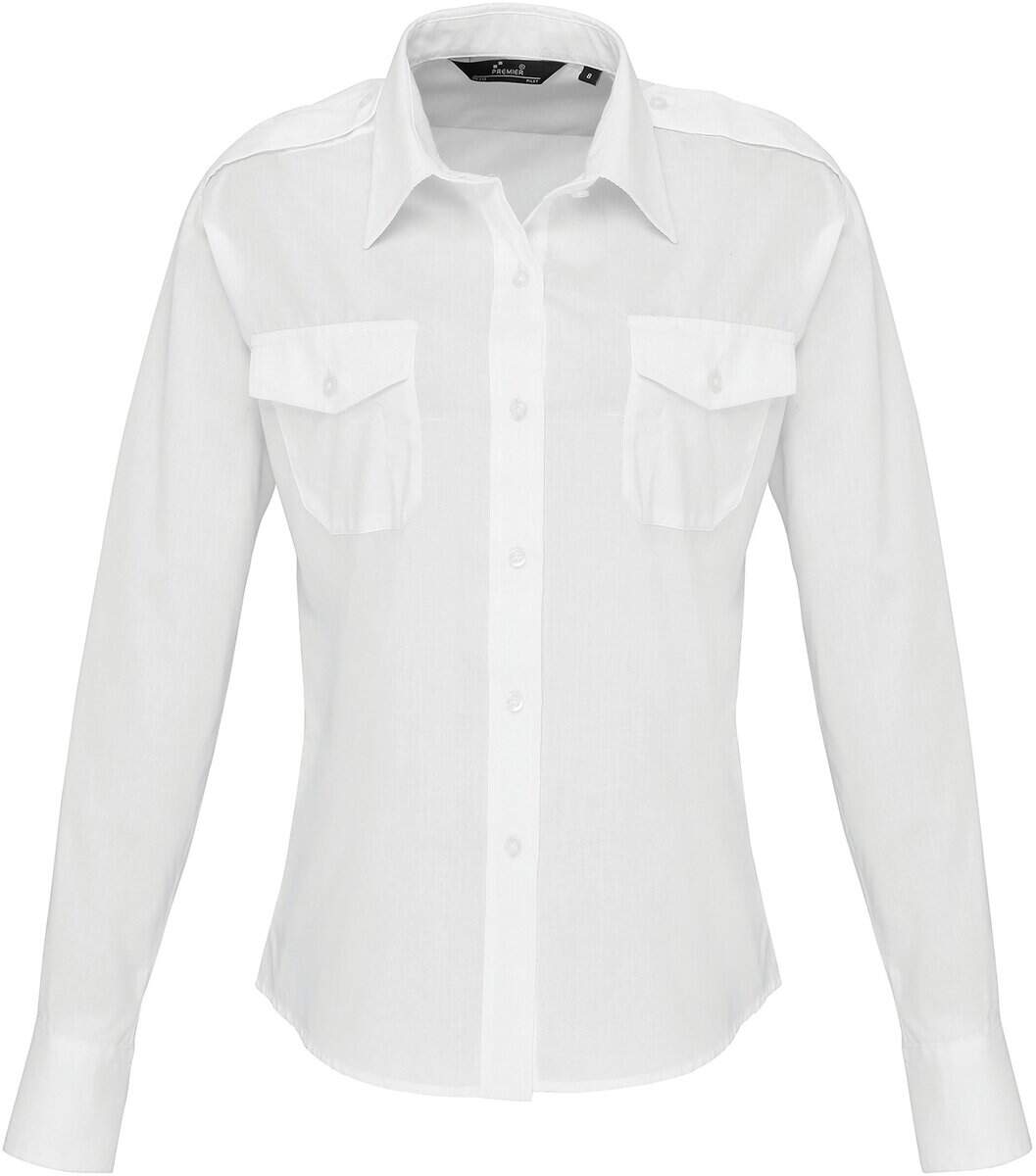 Ladies’ Long Sleeve Pilot Shirt – 65% polyester / 35% katoen. Popline. Easy Care. Versterkte kraag. 2 borstzakken met overslag en knoopje + penhouder op de linkerzijde. Epauletten niet meegeleverd. – Popelinekatoen: een gladde en sterke stof. – Voelt zacht aan en is aangenaam om te dragen. – 2 functionele klepzakken met knoopjes aan de voorkant.