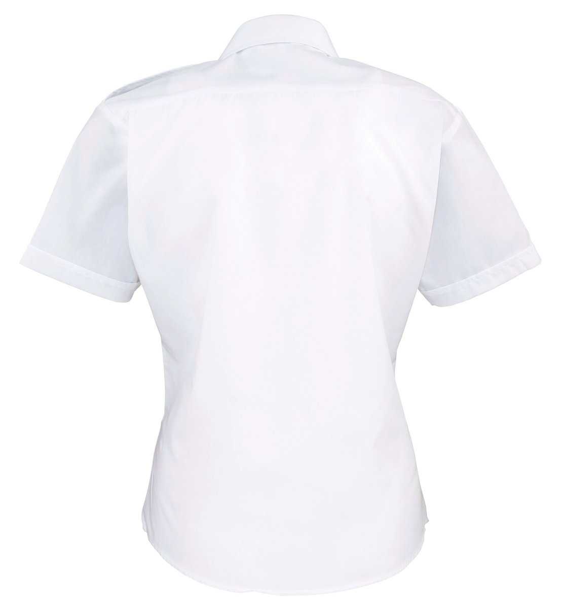 Ladies Pilot Short Sleeved Shirt – 65% polyester / 35% katoen. Popline. Easy Care. Versterkte kraag. 2 borstzakken met overslag en knoopje + penhouder op de linkerzijde. Epauletten niet meegeleverd. – Popelinekatoen: een gladde en sterke stof. – Voelt zacht aan en is aangenaam om te dragen. – 2 functionele klepzakken met knoopjes aan de voorkant.