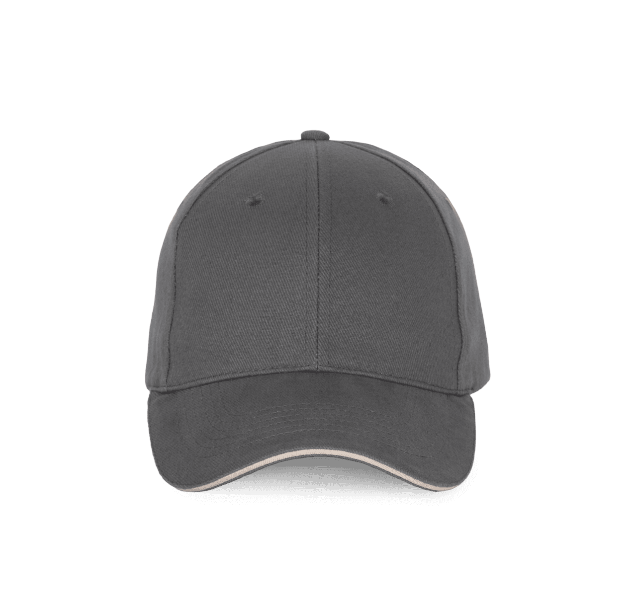Pet met contrastbies – 6 panelen – 100% katoen. Pet met 6 panelen en contrasterende bies. Verstelbare sluiting met metalen gesp en zelfblokkerende lus. – Stevig, zacht en sterk absorberend katoen. – –