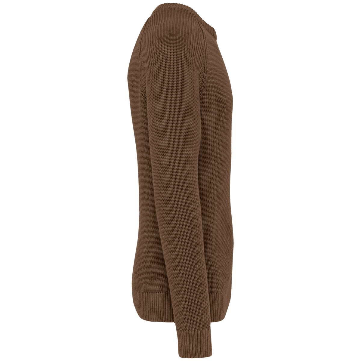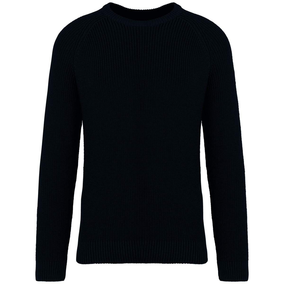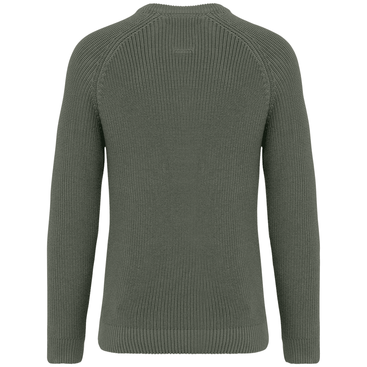 Ecologische dikke gebreide herentrui – 50 % biologisch katoen / 50 % post-consumer gerecycled polyester. . Gauge 5. Fitted pasvorm. Personaliseerbare patch in de kraag. Nektape met contrasterend navy blue visgraatmotief op alle kleuren. Raglanmouwen. 100% gebreid in 1 x 1 ribboord en ´ Fully Fashion ª breisel. Gemiddeld gewicht in maat L : 850g. – In een mix van ecologische materialen. – ‘Fully fashion’ gebreid. – Raglanmouwen voor meer comfort.