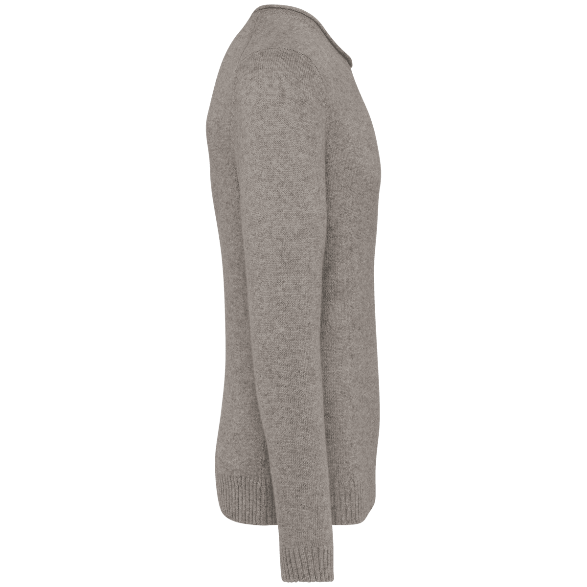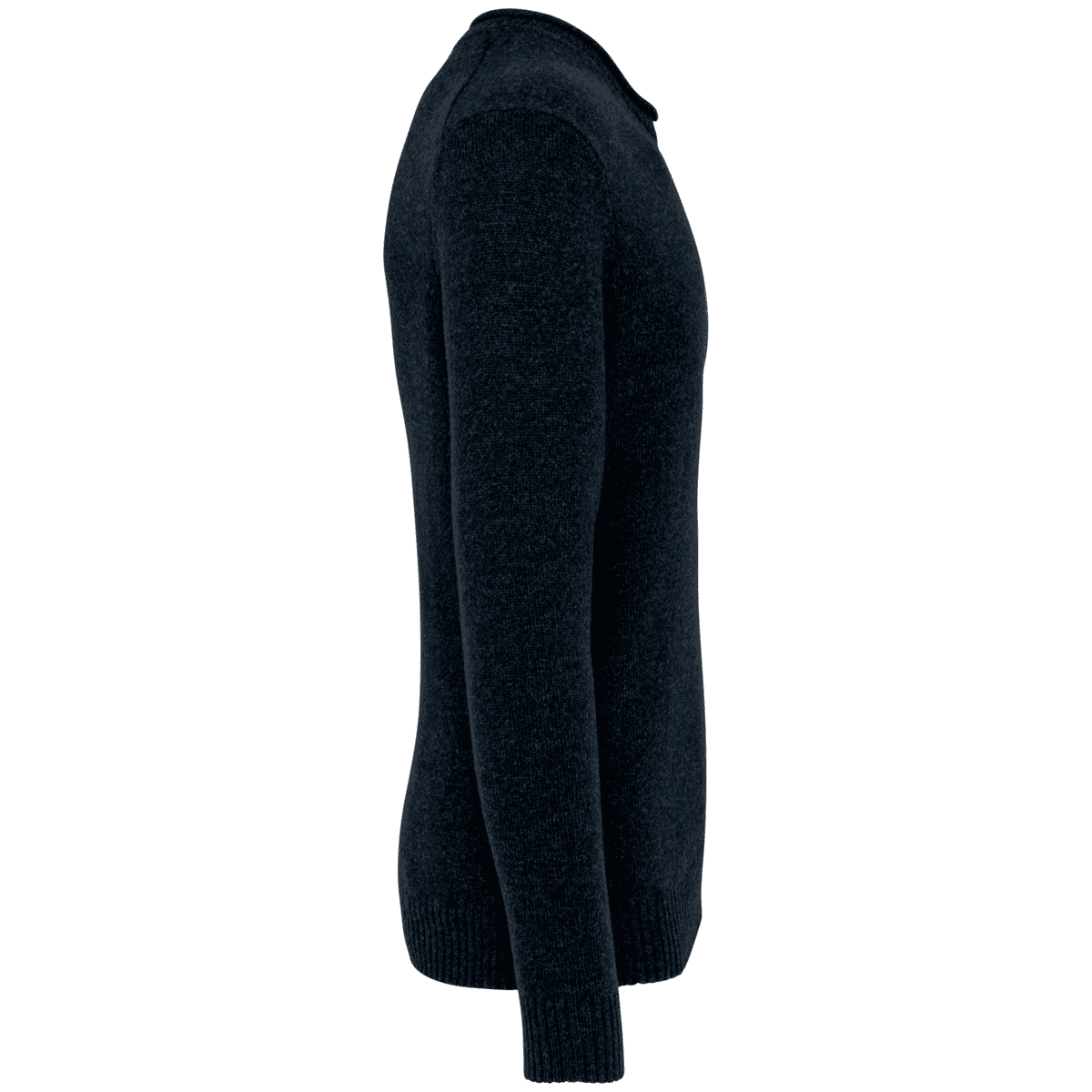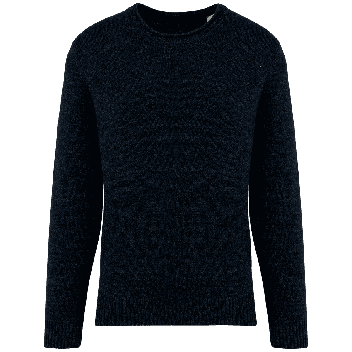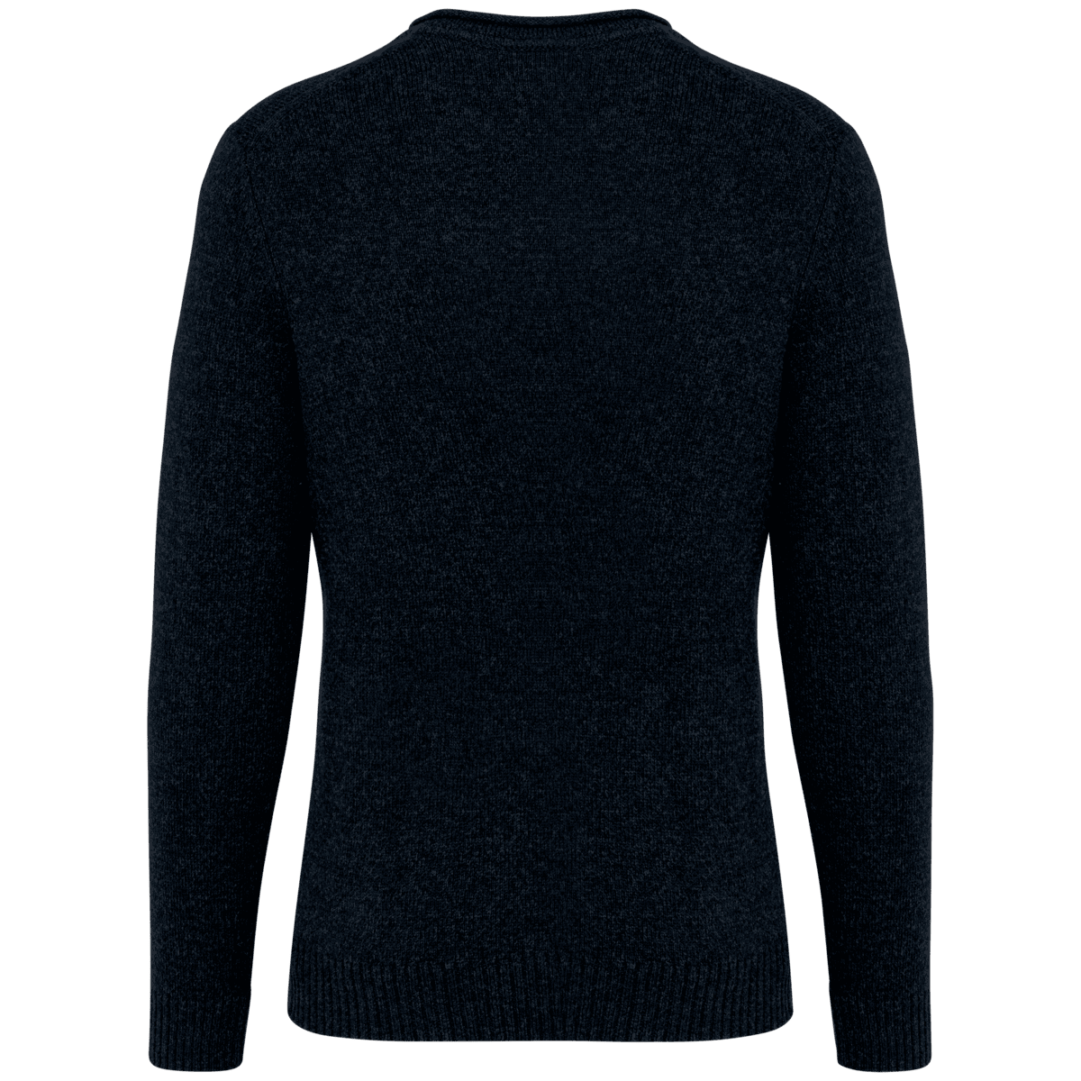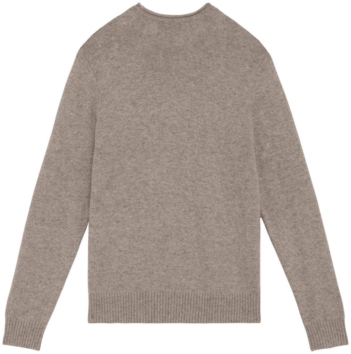 Ecologische herentrui van merinoswol – 50 % biologisch katoen / 50 % verantwoorde RWS-merinoswol. Gekamd katoen. Gauge 7. Fitted pasvorm. Halsopening met opgerolde rand in de hoofdstof. Navy blue nektape op alle kleuren. 2 x 2 ribboord aan de zoom en de mouweinden. ´ Fully Fashion ª breisel. Gemiddeld gewicht in maat L : 425g. – Bevat merinoswol, een edel materiaal. – Verzorgde afwerkingen aan de halsopening. – ‘Fully fashion’ gebreid.