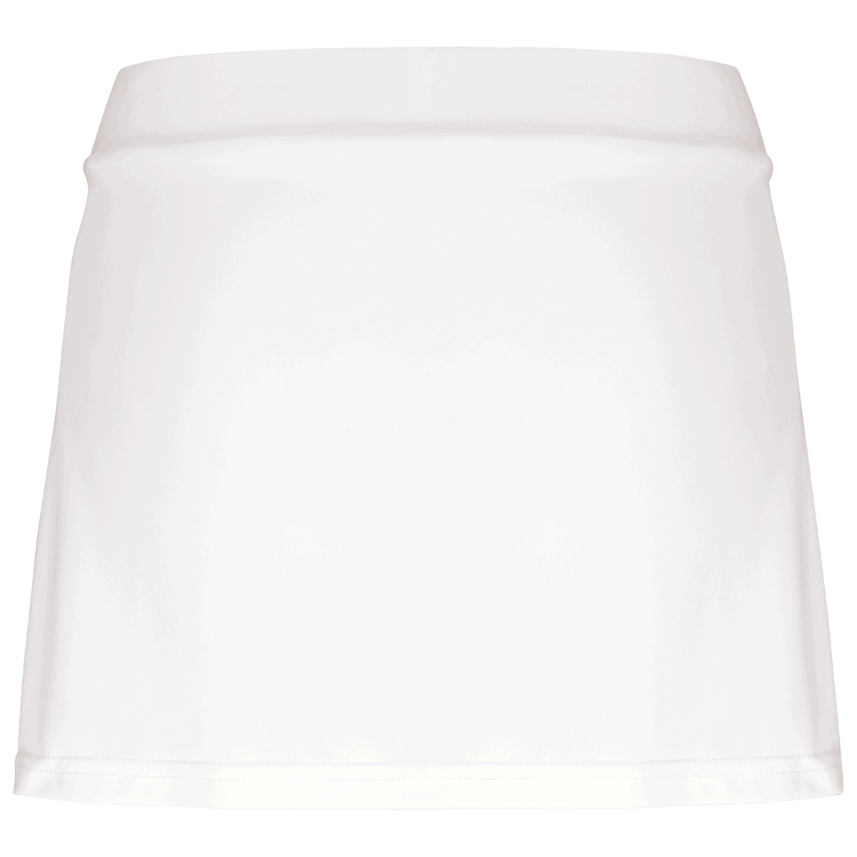 Damestennisrokje – 100% polyester interlock. Voering short: 86% polyester / 14% elasthan. Elastische tailleband. Ondershort met 2 tennisbalzakken. – 100% interlockpolyester: dikker, rolt niet op. – Blijft goed zitten dankzij de elastische tailleband, voor meer comfort. – Ondershort met 2 tennisbalzakken.