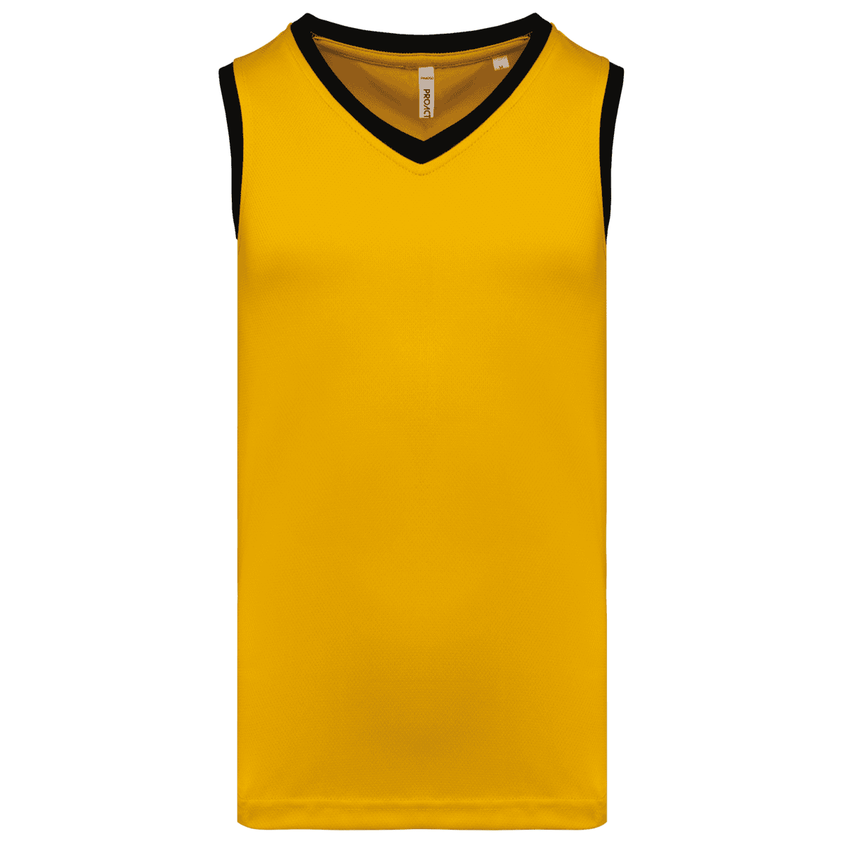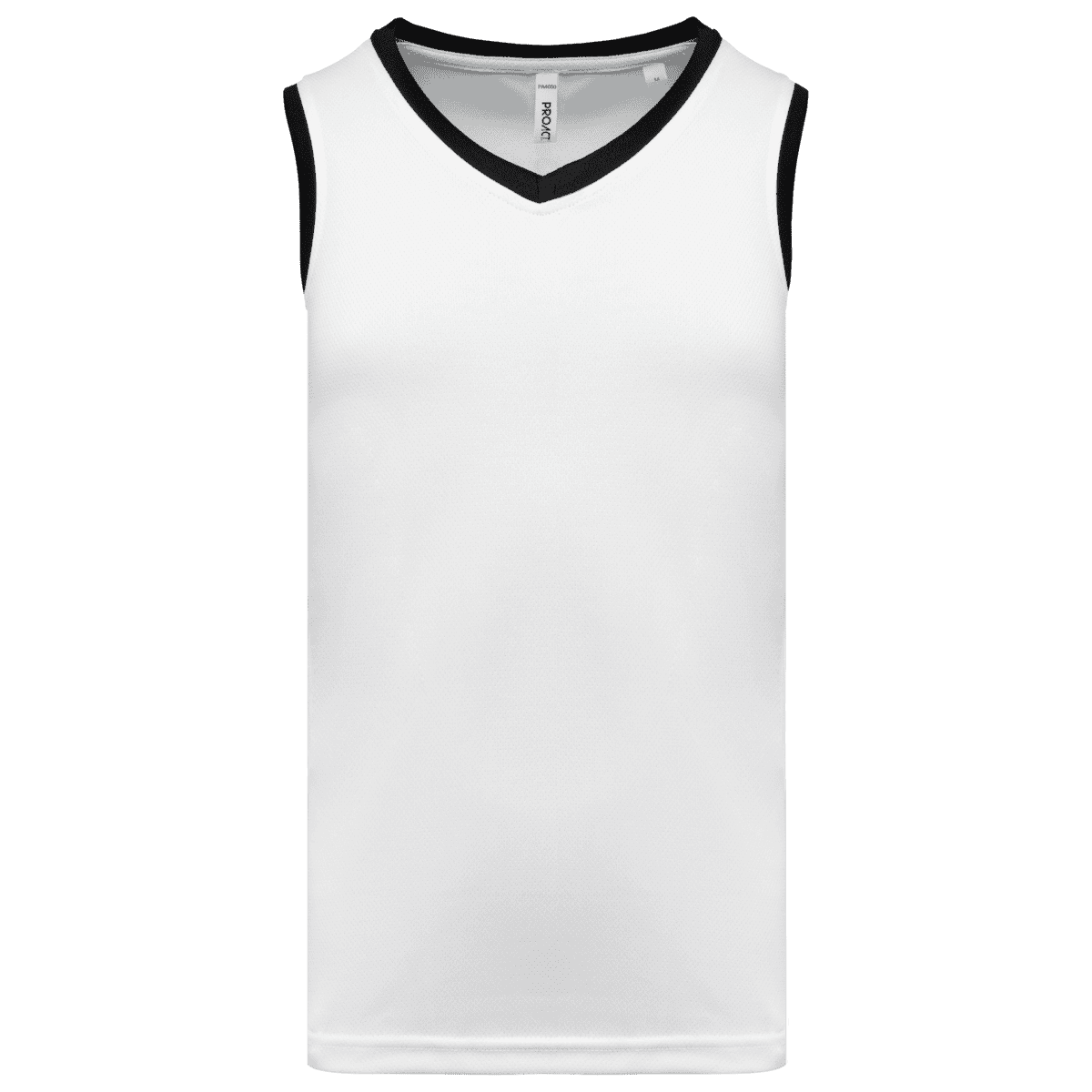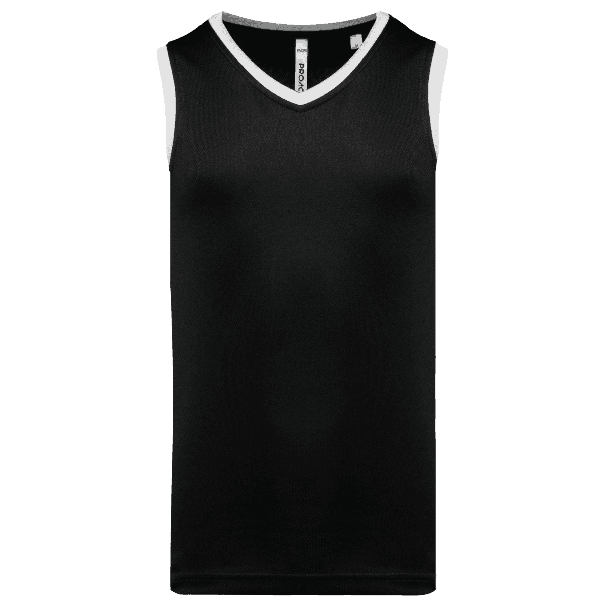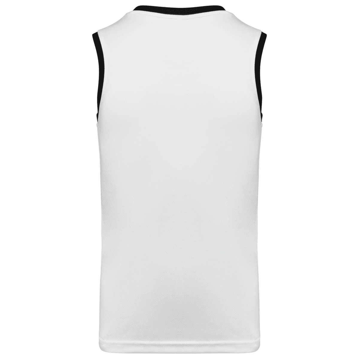 Baskettruitje voor heren – 100% birdseye-polyester. V-hals. Contrasterend biesje aan hals en armsgaten. Dubbel stiksel op de zoom onderaan. Afneembaar merklabel. – Contrasterende biezen voor een dynamische stijl. – Ademende birdseye microgeventileerde stof. – Antistatische behandeling.
