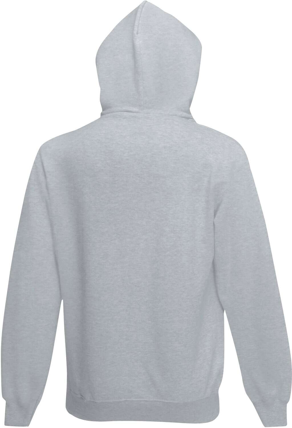 Heather Grey – 260 g/m². 70% katoen / 30% polyester. Gevoerde capuchon met platte ton-sur-ton koordjes. Nektape in jersey in de kraag. Kangoeroezak. Mouwboorden en onderzijde in ribboord katoen/elasthan.