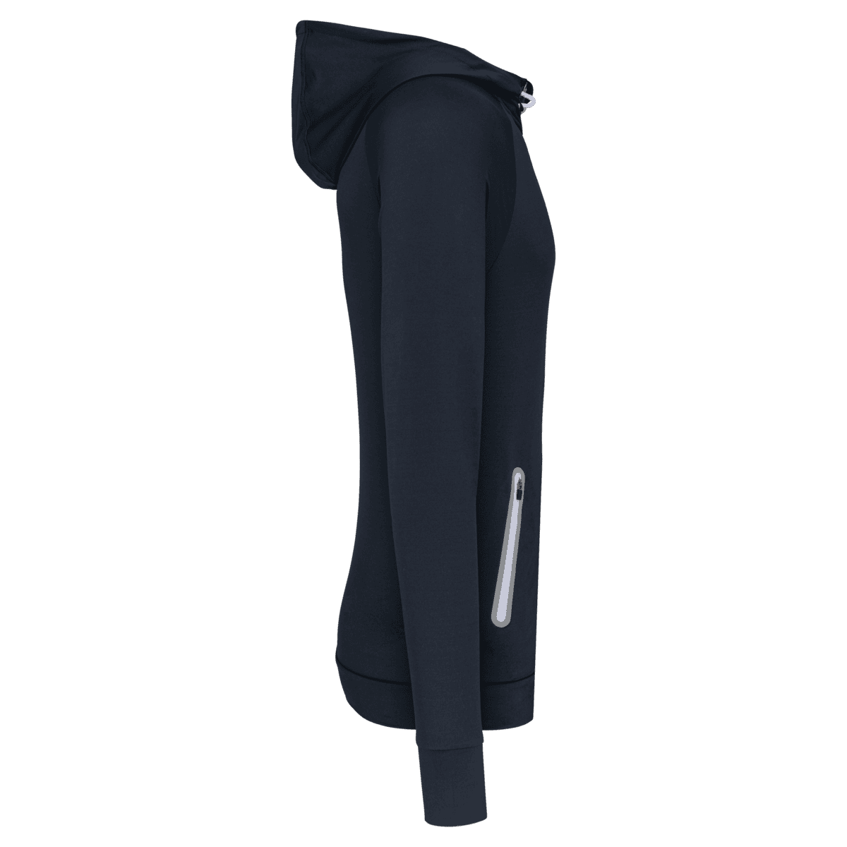 90% polyester / 10% elasthan. Ultrazacht geborsteld jersey. Raglanmouwen. 2 reflecterende ritszakken. Ritsen en koorden : White voor de kleur Navy, Black voor de kleur Red en Sport Grey Melange en Lime voor de kleur Dark Grey.
