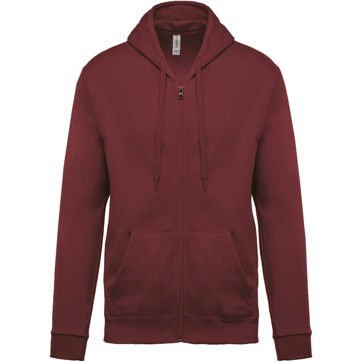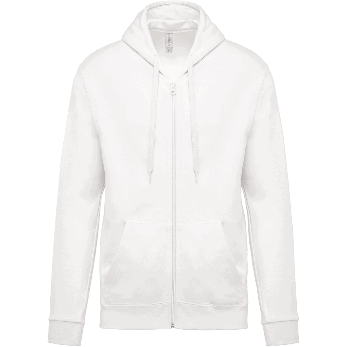 80% katoen / 20% polyester. Geborsteld fleece aan de binnenkant. Ingezette mouwen. Nylon ritssluiting. Gevoerde capuchon met toon op toon aanrijgkoordjes. Kangoeroezakken. Ribboord aan mouwuiteinden en aan de onderkant.