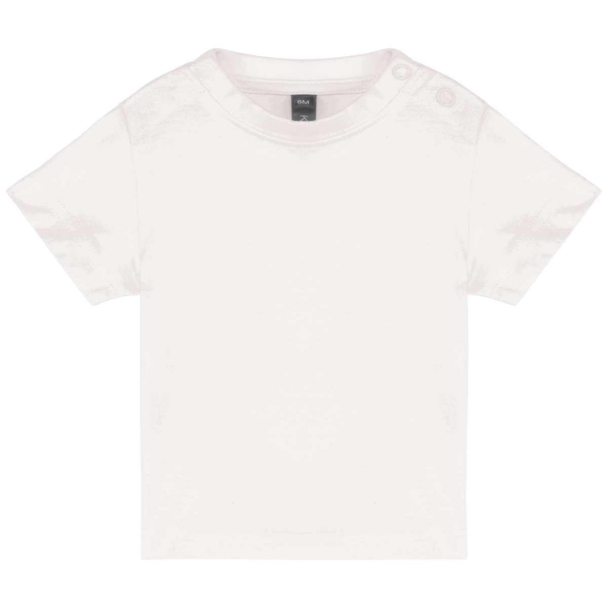 Baby-t-shirt korte mouwen – 100% enzym behandeld katoen voor extra zacht aanvoelen. Ronde hals met 2 drukknopen ter hoogte van de schouder. Gecontrasteerd nektape. Afwerking met dubbele stiksels. – Het onmisbare, enzymgewassen baby-t-shirt. – Zacht en uitstekend bedrukbaar. – Gemaakt uit 100% katoen.