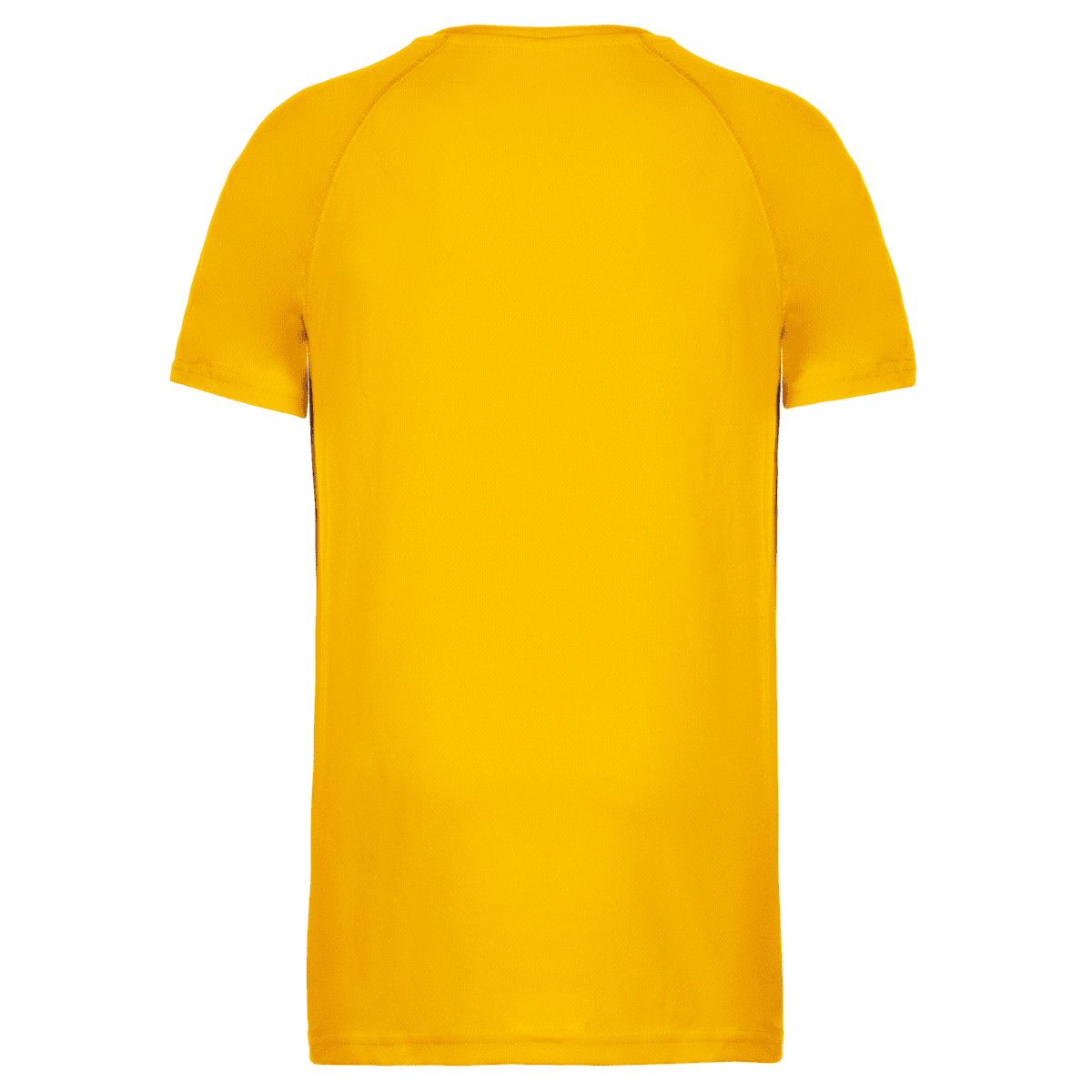 Functioneel sportshirt – 100% polyester. Sneldrogende lichte stof. Ronde hals. Nektape. Raglan mouwen met overstiksels. Afwerking met dubbele stiksels aan de mouwuiteinden en onderkant. – 100% polyester: heel sterk, licht en ademend. – Lichte en sneldrogende stof. – Ronde halsopening met nektape aan de binnenkant.
