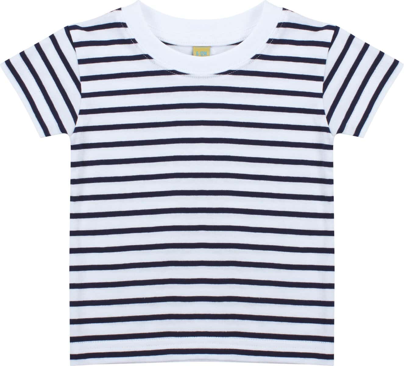 100% katoen single jersey. Gestreept t-shirt met korte mouwen met effen geribd detail aan de nek. Ingezette mouwen en dubbeldraads gestikt. Alleen maatlabel.