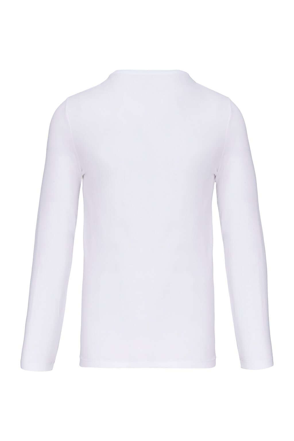 T-shirt ronde hals lange mouwen – 97% katoen / 3% elasthan. Chiné kleuren: 87% katoen / 9% viscose / 4% elasthan. Ronde hals. Dubbel stiksel aan mouwuiteinden en onderkant. De moderne getailleerde snit zijn volgens de laatste modetrends. – Modieuze, trendy snit. – Valt soepel en licht. – Collectie heel comfortabele T-shirts.