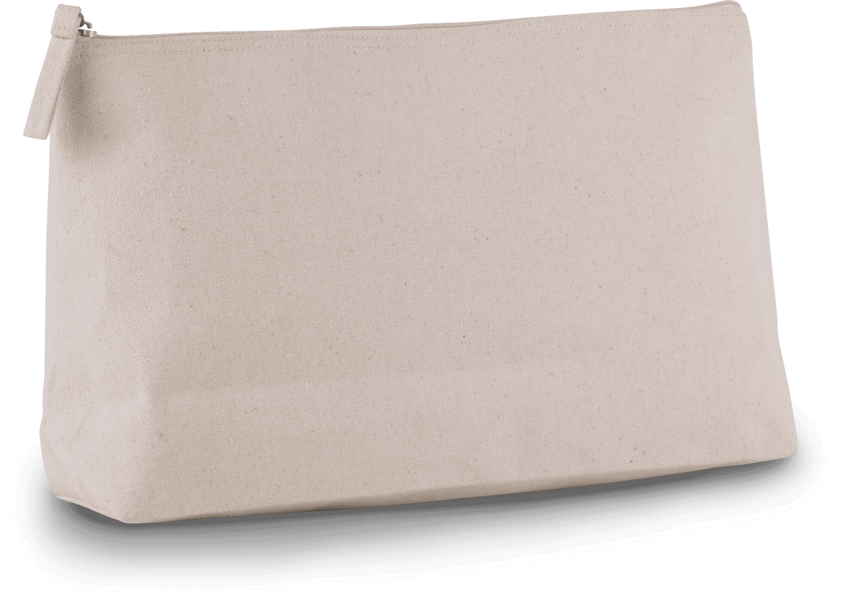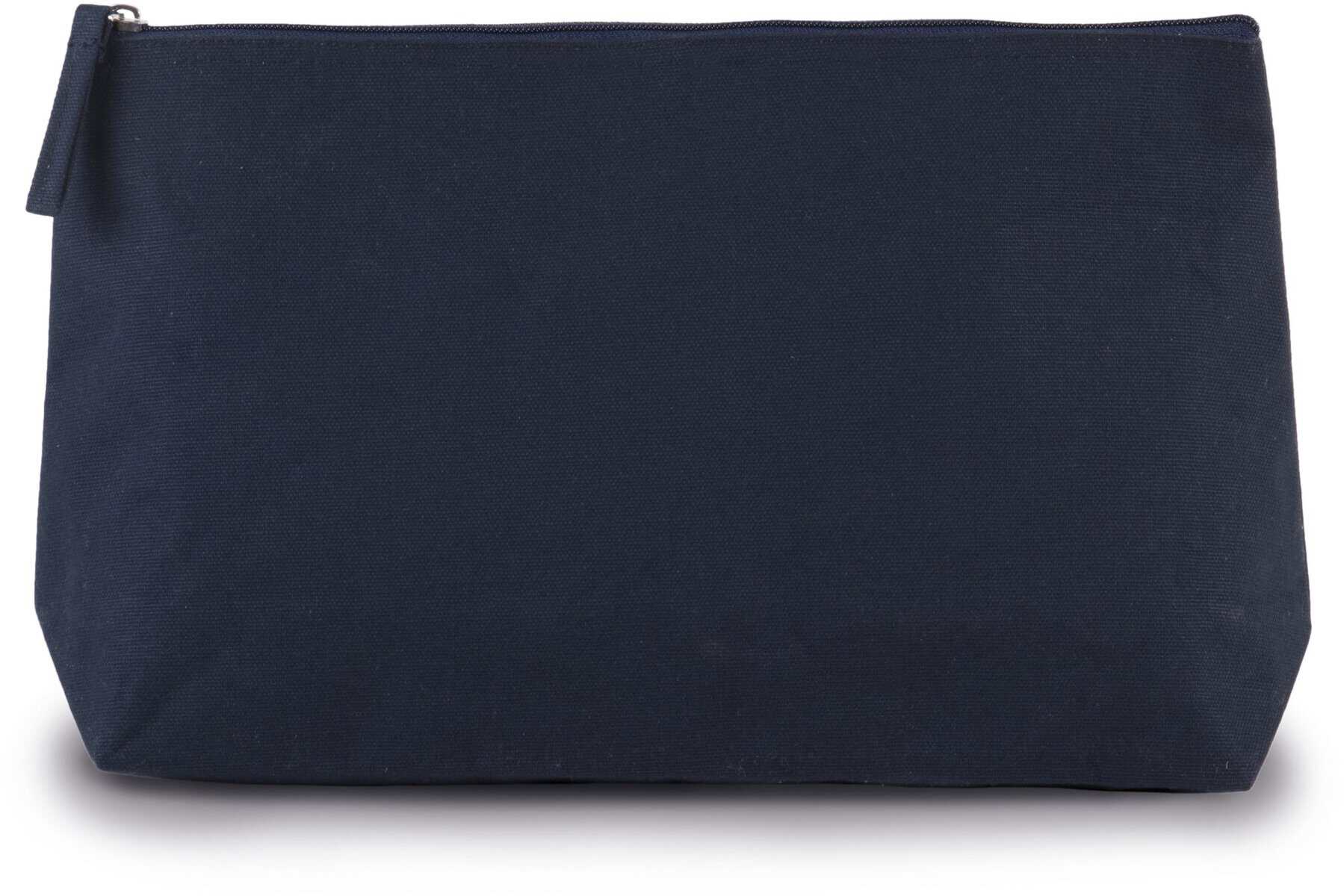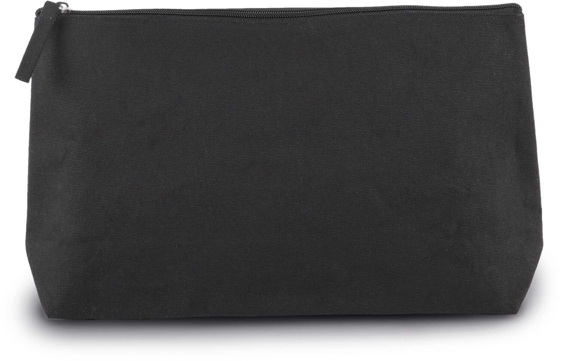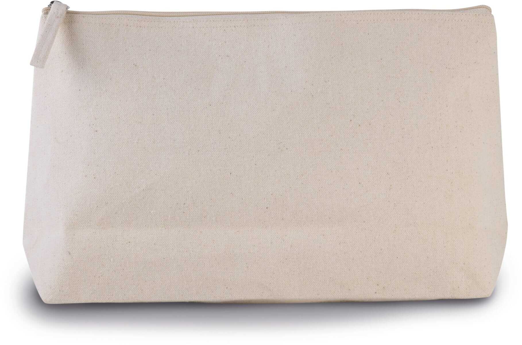 Toilettas met plooi gemaakt van katoenen canvas gelamineerd met polyurethaan. Ton-sur-ton ritssluiting.