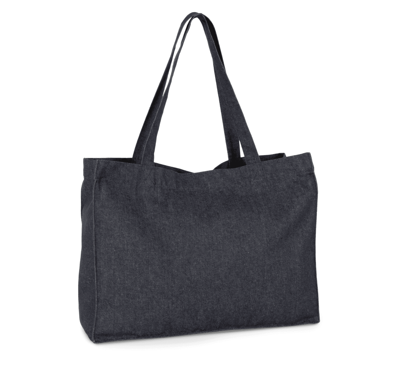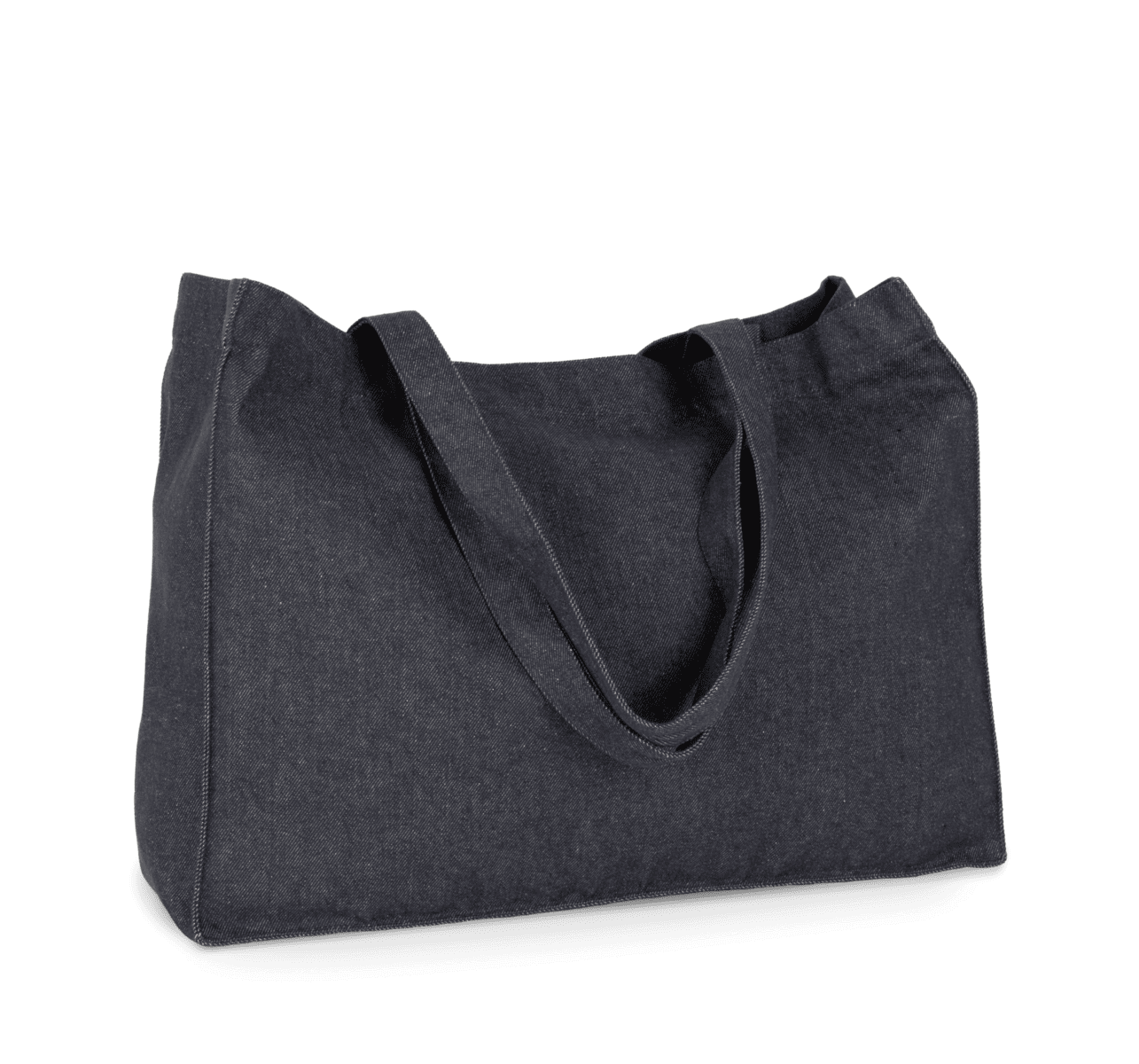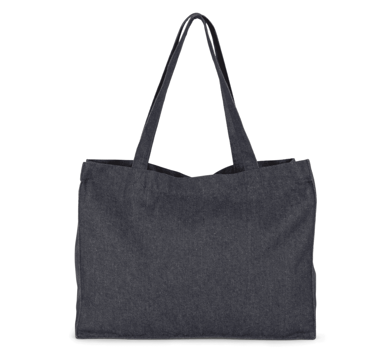 Grote shopper in denim – 70 % gerecycled katoen / 28 % gerecycled polyester / 2 % andere vezels. De hengsels zijn gemaakt van hetzelfde materiaal als de body van de tas. Doordat het materiaal gerecycled is, vervaagt de kleur van de stof niet. – Grote, duurzame tas gemaakt van gerecycleerd katoen en gerecycleerd polyester. – Stevige hengsels, gemaakt van hetzelfde materiaal als de body van de tas. – Gerecycleerd materiaal, voor een mooie en stabiele denimkleur.