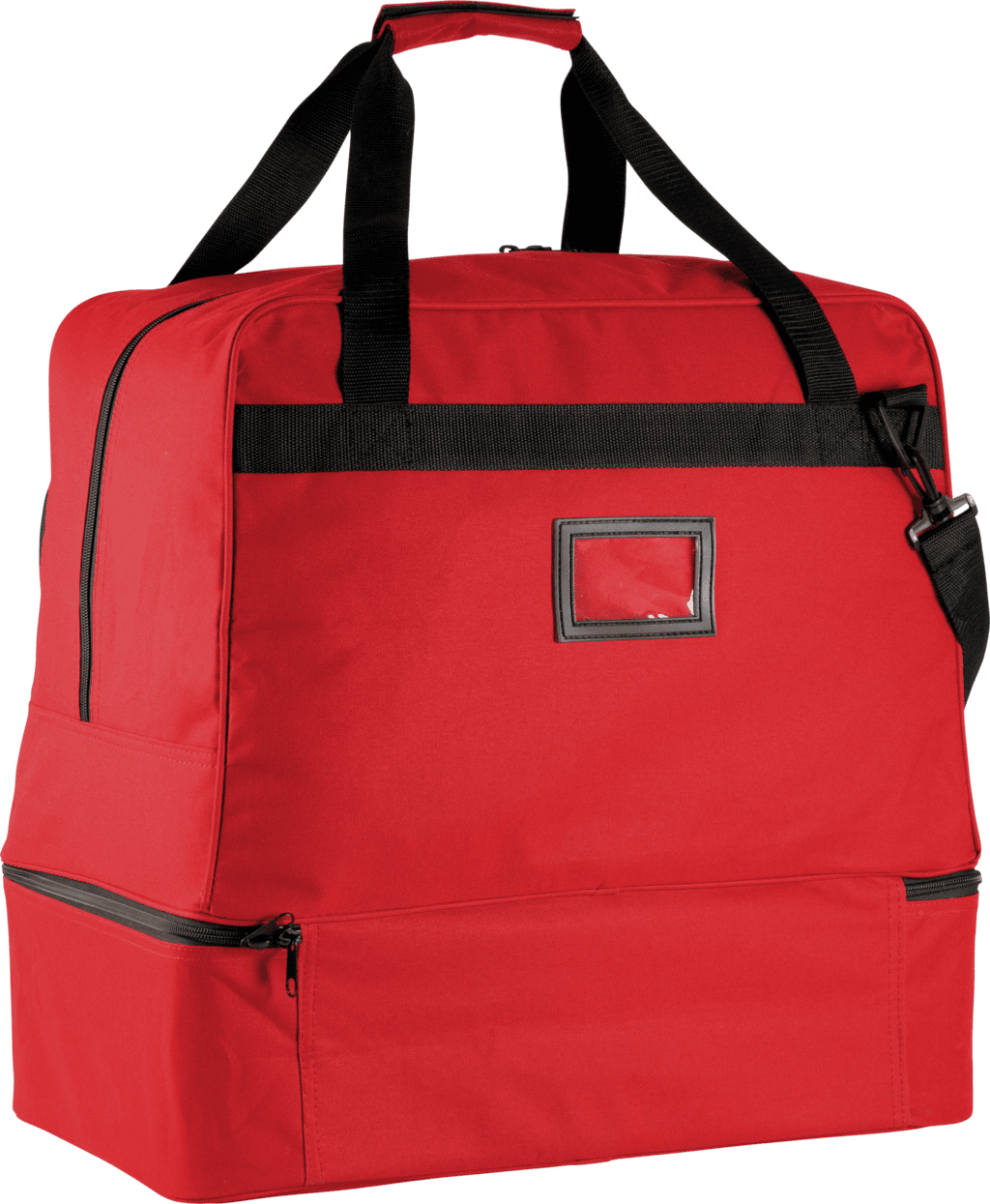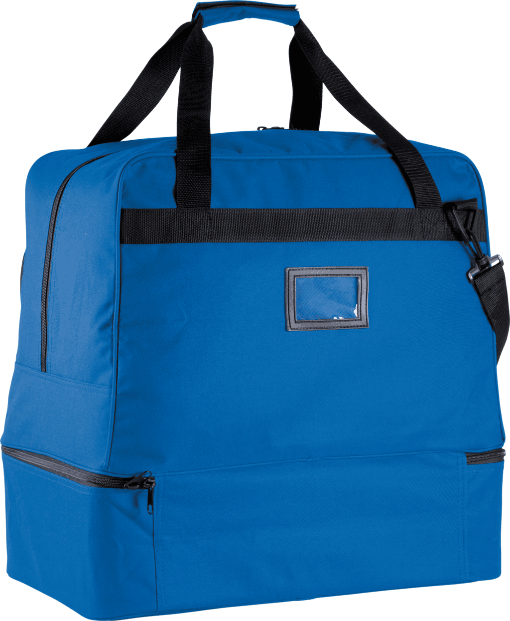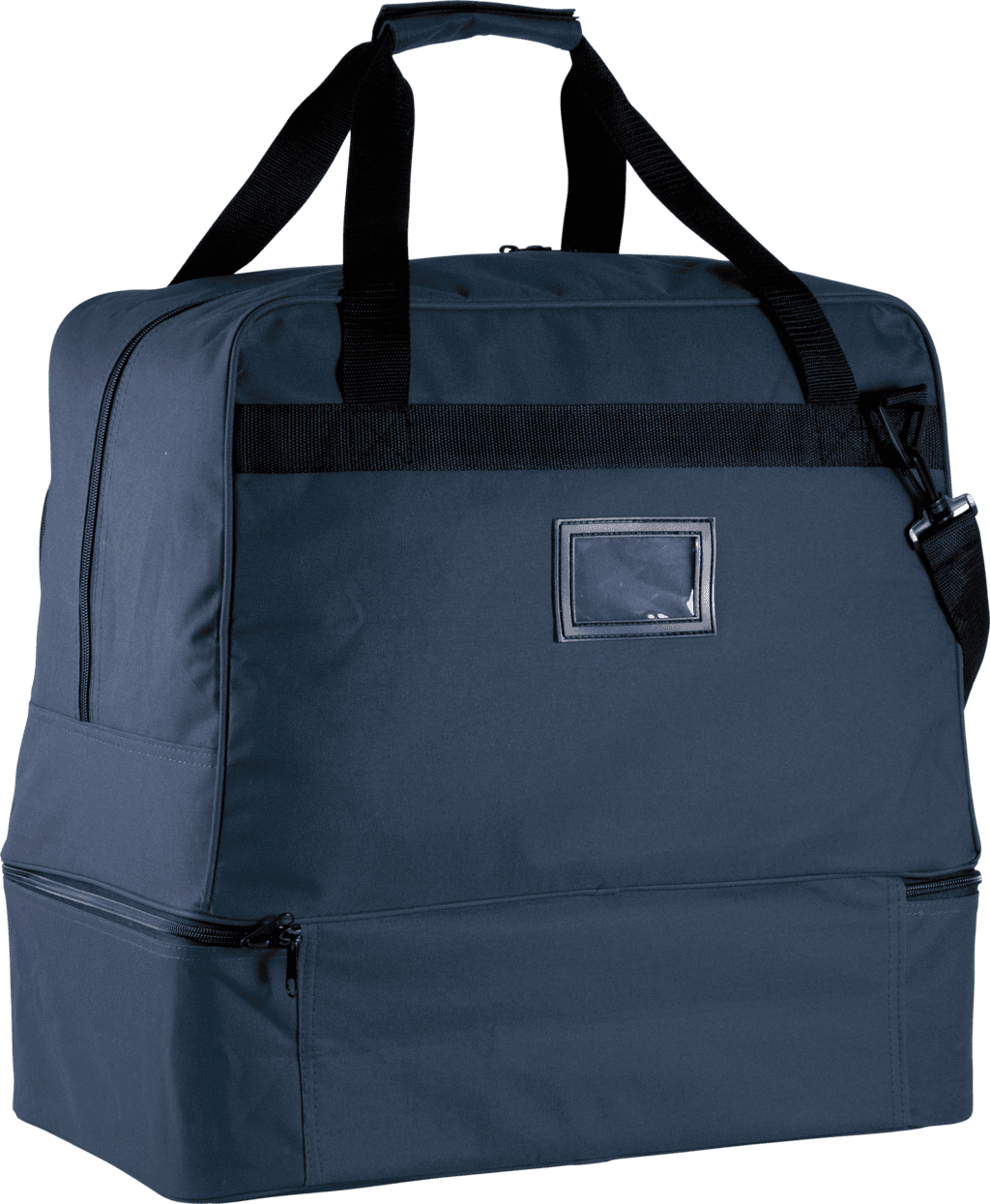 SENIOR’ model / 90 liter – Polyester 600D. 90 liter inhoud. Verstevigde bodem in polypropylene met voetjes in plastic. Voorzak met rits om de personalisatie te vereenvoudigen. Kaarthouder. Afneembare schouderband met patch in silicone. – Afneembare harde bodem. – Ritszak op de voorkant voor eenvoudige personalisatie. – Afneembare schouderband en kaarthouder.