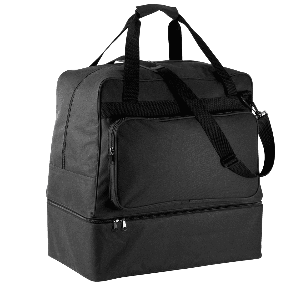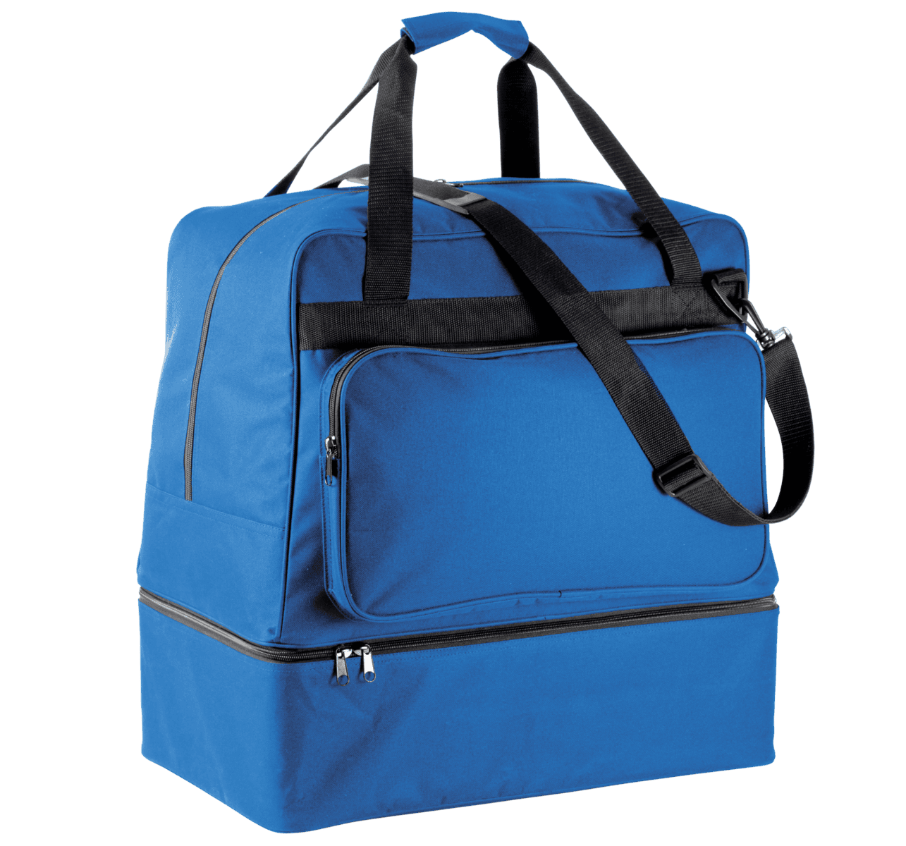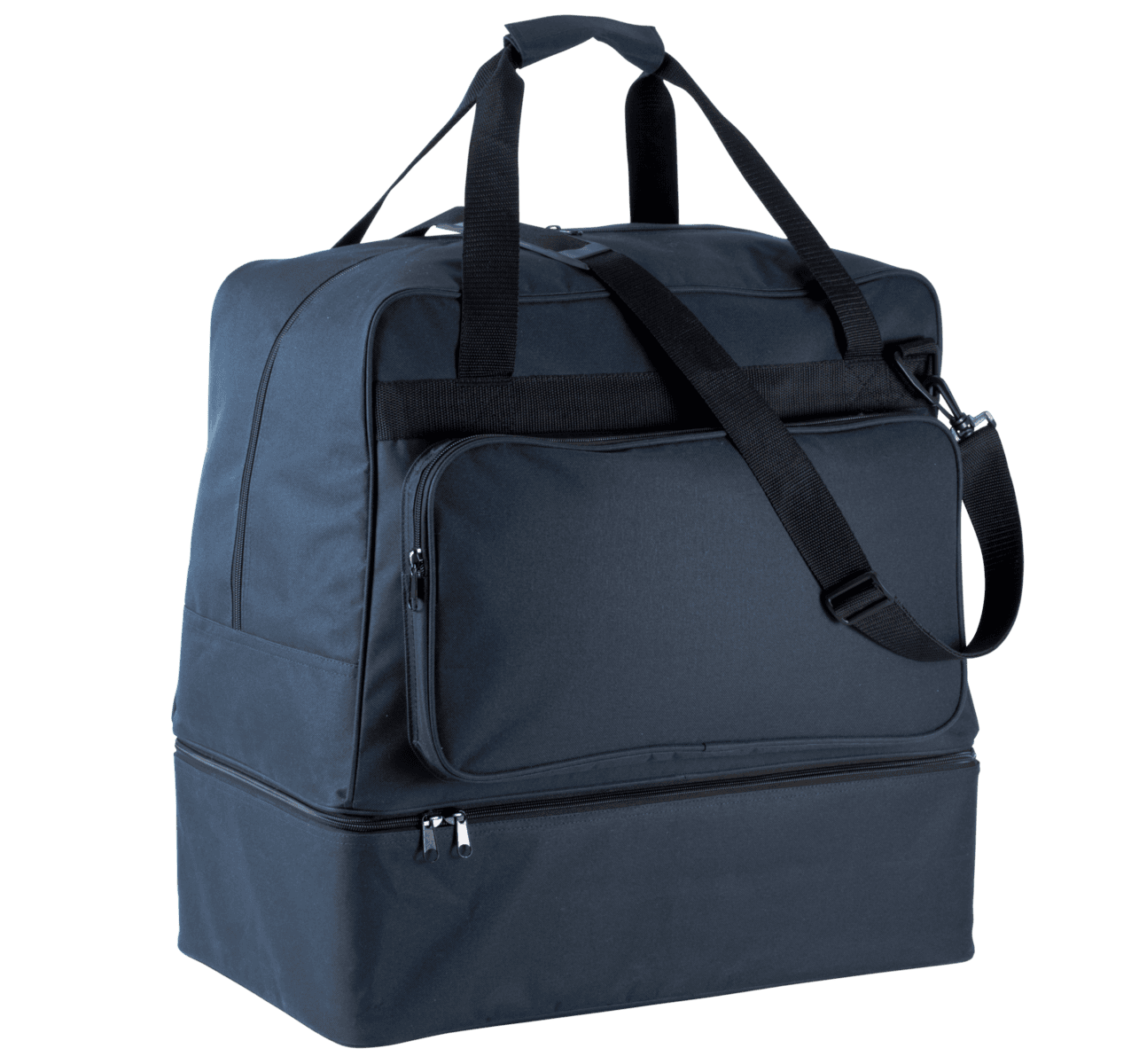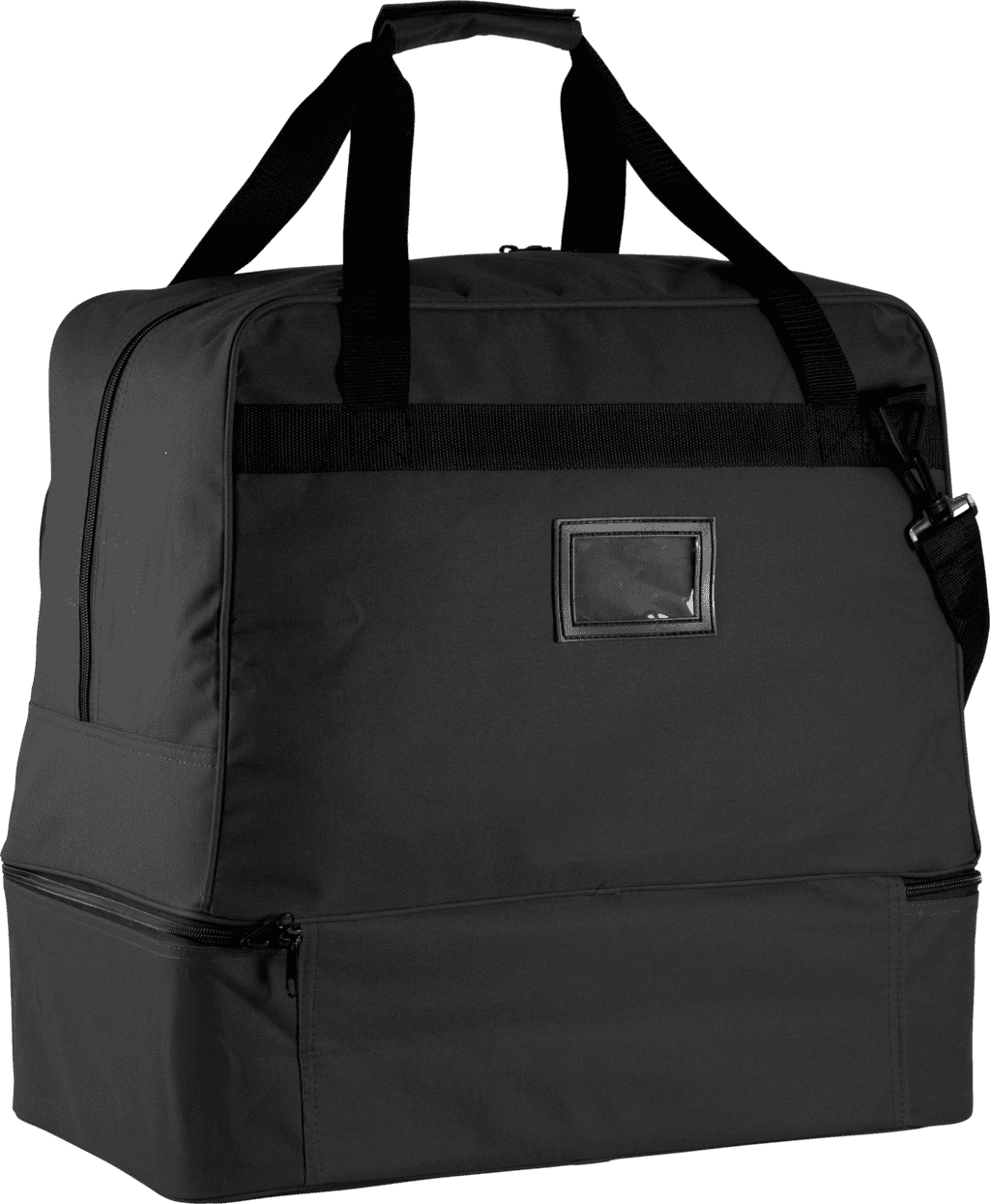 SENIOR’ model / 90 liter – Polyester 600D. 90 liter inhoud. Verstevigde bodem in polypropylene met voetjes in plastic. Voorzak met rits om de personalisatie te vereenvoudigen. Kaarthouder. Afneembare schouderband met patch in silicone. – Afneembare harde bodem. – Ritszak op de voorkant voor eenvoudige personalisatie. – Afneembare schouderband en kaarthouder.