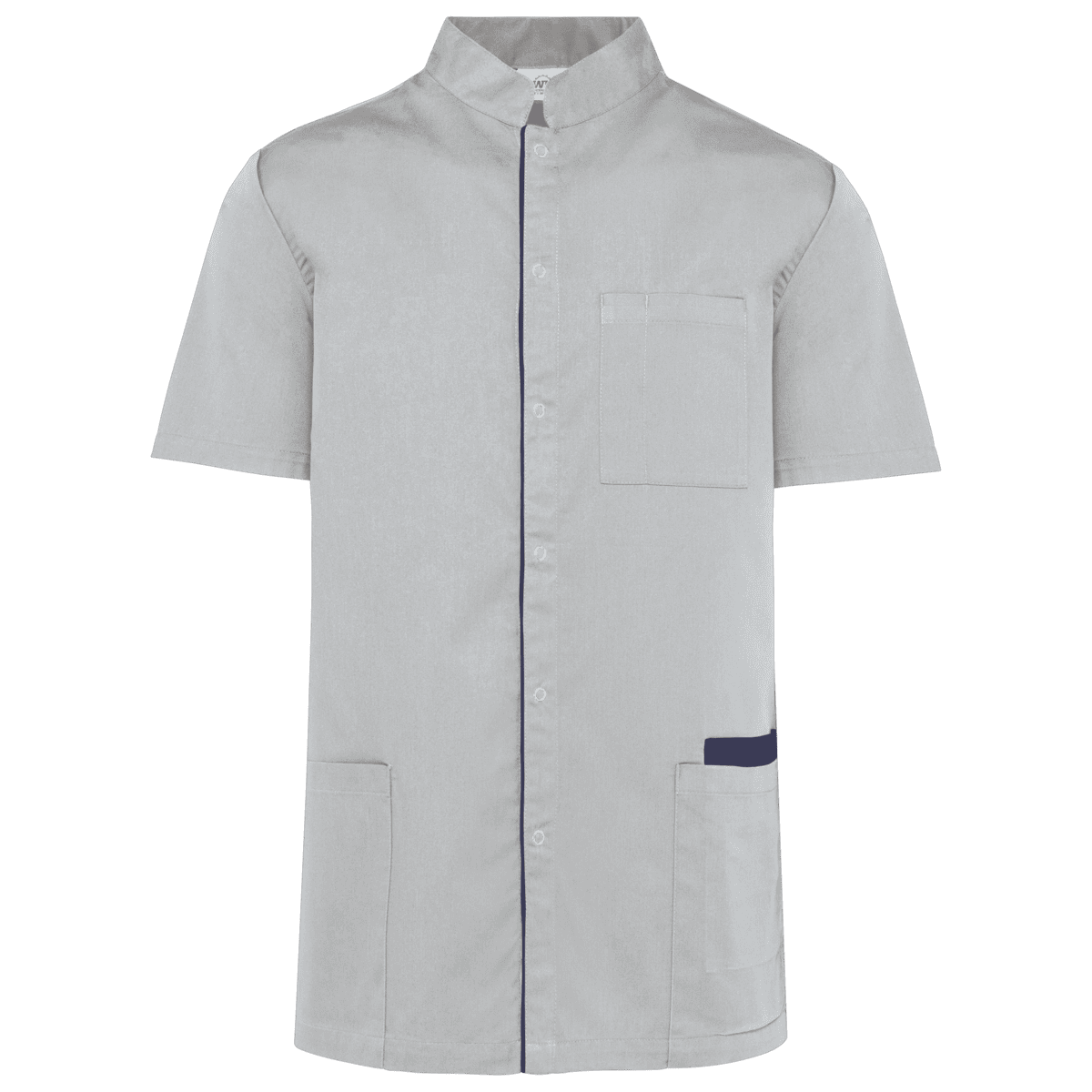 Herenoverhemd in polykatoen met drukknopen – 65% polyester / 35% katoen. Polykatoenen twill. Wassen op 60∞C. Fitted pasvorm. Maokraag. Sluit vooraan met drukknopen. 1 opgezette borstzak met pennenvakje links. 2 grote opgezette zakken vooraan, waarvan één (links) met twee vakjes (binnenzak met contrasterende boord). Contrasterende bies op de sluiting en op het inzetsel achteraan. Naamlabel aan de binnenkant. 2 zijsplitten. Tear-away merklabel. – Stevige, polykatoenen stof die de hele dag aangenaam zit. – Wasbaar op 60 ∞C: dagelijkse bescherming en hygiÎne. – Afneembaar label voor eenvoudige personalisatie.